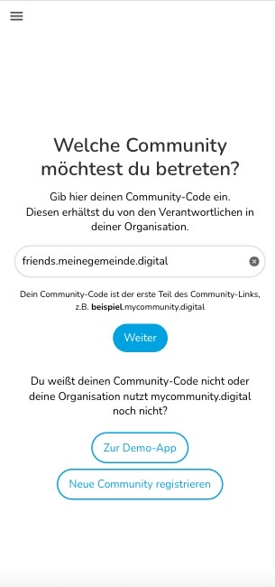 9 Hier kannst du weiteren Gemeinden beitreten (siehe Erste Schritte). Diese erscheinen danach unter deiner anderen Gemeinde im Menü.